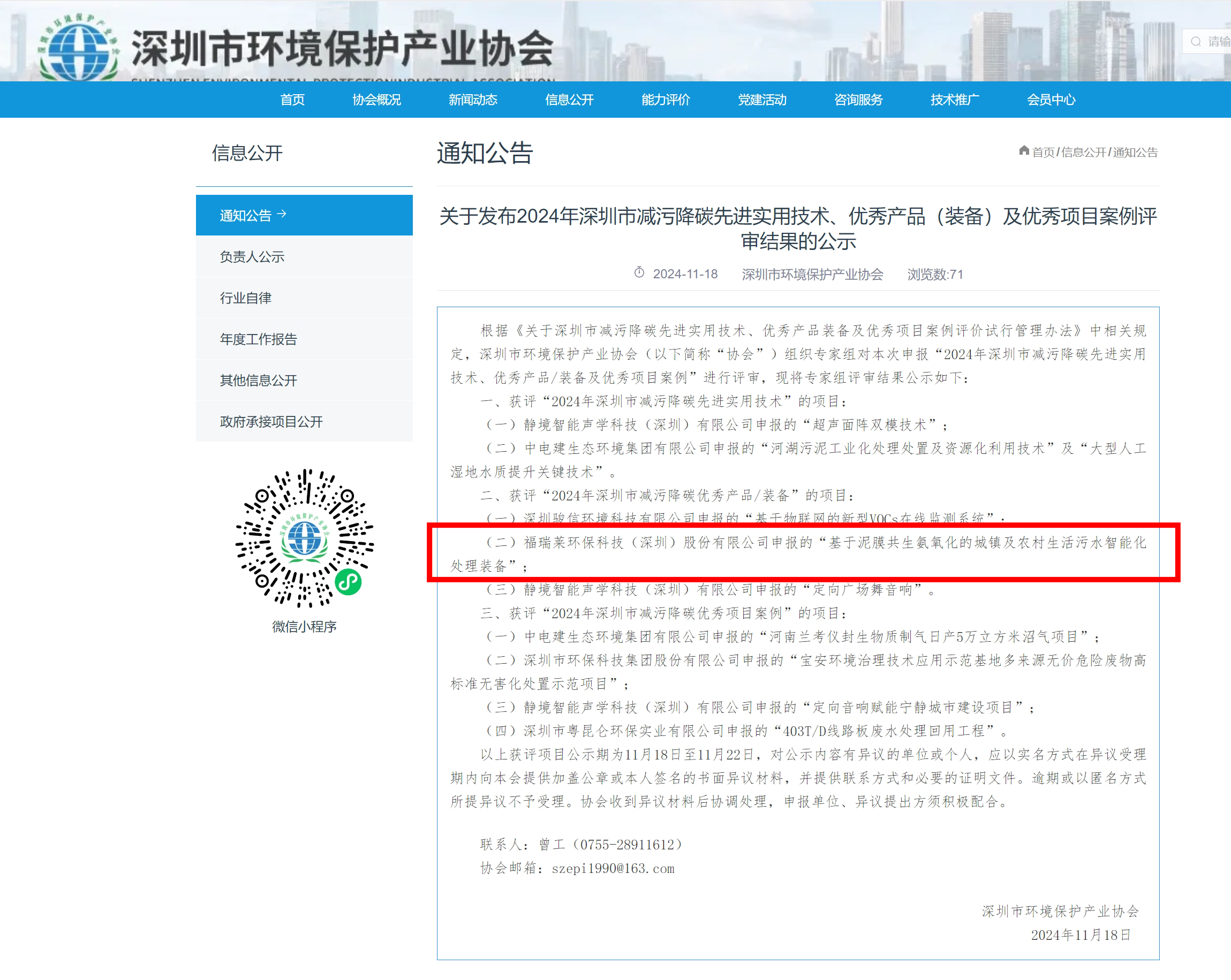 此前,福瑞莱智能化污水处理装备凭借独特的模式优势、技术优势,在深圳市众多参选企业项目中脱颖而出,获得由深圳市环境保护产业协会授予的“2024年深圳市减污降碳优秀产品/装备”荣誉。